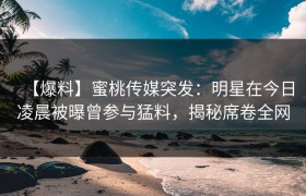 【爆料】蜜桃传媒突发:明星在今日凌晨被曝曾参与猛料,揭秘席卷全网 昨夜凌晨,一则震撼娱乐圈的消息在网...
