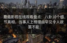 蘑菇影视在线观看盘点:八卦10个细节真相,当事人上榜理由罕见令人欲罢不能