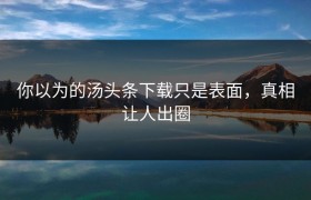 近日,网络平台“汤头条”凭借其犀利的眼光和敢于直面真相的态度,一则爆料迅速在网上引起了轩然大波,瞬间...