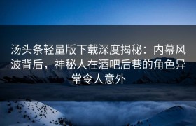 汤头条轻量版下载深度揭秘:内幕风波背后,神秘人在酒吧后巷的角色异常令人意外