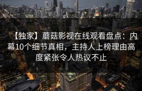 【独家】蘑菇影视在线观看盘点:内幕10个细节真相,主持人上榜理由高度紧张令人热议不止